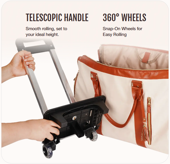 No more awkward lifting or juggling heavy bags. Snap on the wheels, glide through the airport like it’s nothing, and when you’re done, just pop them off and tuck them inside. It’s that easy—no tools, no stress, just smooth travel at your fingertips.